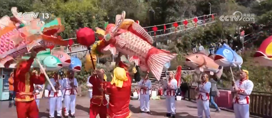 記者身后的九鯉湖景區(qū),湖光山色、層巒疊翠,展現(xiàn)出南方山岳特有的靈秀。景區(qū)里最熱門的打卡點(diǎn)之一,叫做“一線天”。這里最窄處不到30厘米,一次只能容一人貼壁通過(guò),游客需要側(cè)身慢慢穿行,在狹窄石縫間體驗(yàn)攀登的樂(lè)趣。記者身旁正在巡游的就是當(dāng)?shù)氐姆沁z——店下魚(yú)燈。大家看,一盞盞彩繪魚(yú)燈隨著隊(duì)伍前進(jìn)上下擺動(dòng),像魚(yú)兒在水里游,特別靈動(dòng)。在過(guò)去,漁民會(huì)用魚(yú)燈祈愿出海平安、豐衣足食。過(guò)年的時(shí)候看魚(yú)燈,也寓意“年年有余、風(fēng)調(diào)雨順”。