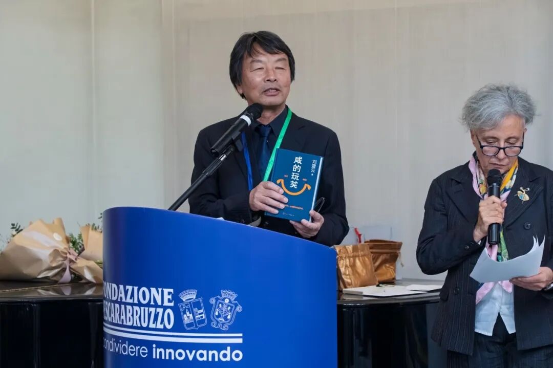 2026年2月20日,劉震云在意大利國際南北文學(xué)獎(jiǎng)的頒獎(jiǎng)儀式上講話,旁邊為其作品意大利語翻譯李莎(Patrizia Liberati)。