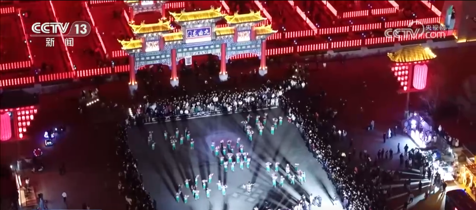 九曲燈陣占地面積近20畝,外部方正、內(nèi)部曲折,宛如“九曲十八彎”的黃河。游客們跟隨奏樂隊伍,進(jìn)入九宮九格的迷宮,穿行全長2.4公里的回廊,依次走過寓意著“福祿壽喜”的九個曲陣。兩邊的燈籠上懸掛著百家姓和十二生肖,游客們可以一邊轉(zhuǎn)九曲,一邊尋找印有自己姓氏和屬相的紅燈籠,沉浸式體驗(yàn)元宵佳節(jié)的喜慶氛圍。除了九曲燈陣,社火展演、主題光影秀、無人機(jī)煙花秀也輪番上演。據(jù)了解,該活動將一直持續(xù)到正月十五。