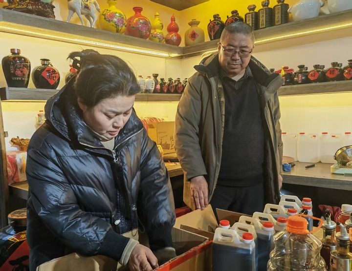 圖為來自山東的游客正在磧口古鎮(zhèn)的紅棗產(chǎn)品專營店里購買紅棗醋。新華每日電訊記者柴婷 攝