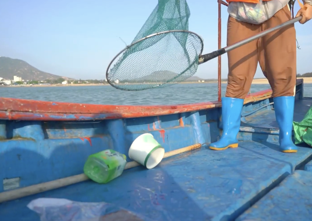 2003年,剛滿20歲的鐘強彬首次隨父出海,沒想到第一網(wǎng)收獲的近半是塑料垃圾。在當(dāng)?shù)貪O民的傳統(tǒng)觀念里,撈到的垃圾是“晦氣”,會被直接扔回海里。