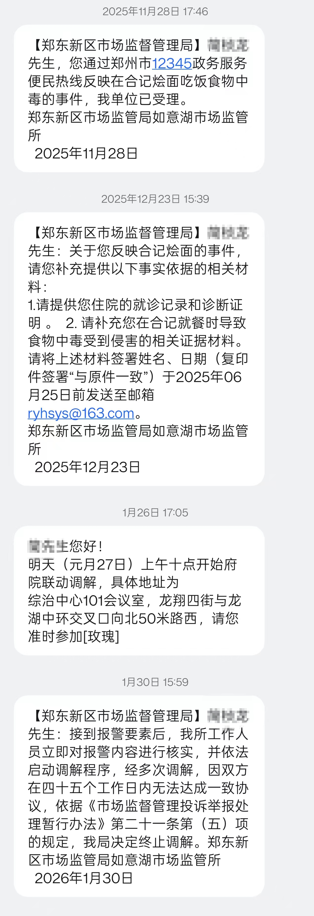 春節(jié)期間,鄭州市鄭東新區(qū)如意湖市場監(jiān)督管理所相關工作人員電話通知簡先生稱,已對涉事門店出具了行政處罰通知書,罰款4萬元。鄭州合記燴面眾意路店對此并不認可,申請了聽證會流程。簡先生稱,他已申請查閱卷宗,但目前尚未得到回復。