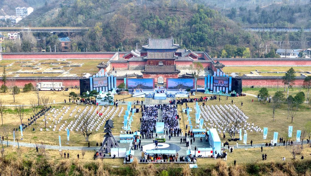新華社武漢3月21日電(記者宋立崑)首個“國際太極拳日”十堰會場主題展演活動開幕式暨“百國千城萬場”云太極全球快閃活動,21日在湖北省十堰市武當山旅游經濟特區(qū)遇真宮廣場舉行。