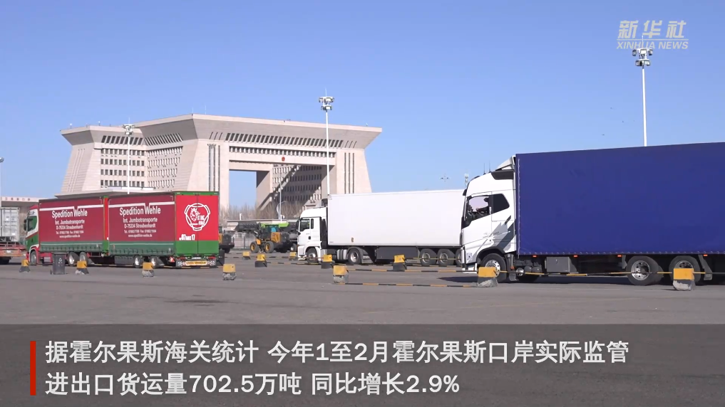 在霍爾果斯口岸,目前每天有上千輛滿載新鮮果蔬、日用百貨的廂式貨車及商品車從這里出境,運(yùn)往哈薩克斯坦、烏茲別克斯坦等共建“一帶一路”國家。據(jù)霍爾果斯海關(guān)統(tǒng)計(jì),今年1至2月霍爾果斯口岸實(shí)際監(jiān)管進(jìn)出口貨運(yùn)量702.5萬噸,同比增長2.9%。