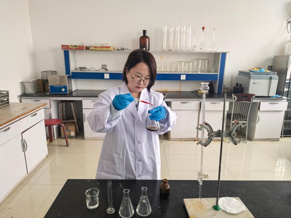 內(nèi)蒙古興安農(nóng)墾集團(tuán)有限責(zé)任公司測(cè)土配方辦公室技術(shù)人員正在進(jìn)行化驗(yàn)。(王萍 攝)
