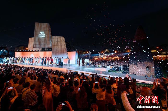 4月18日晚,福建泉州石獅打破傳統(tǒng)秀場的封閉空間,以承載千年海絲記憶的萬壽塔為天然幕布,打造場景化、開放式、沉浸式的戶外時尚盛宴。(石獅市融媒體中心供圖)