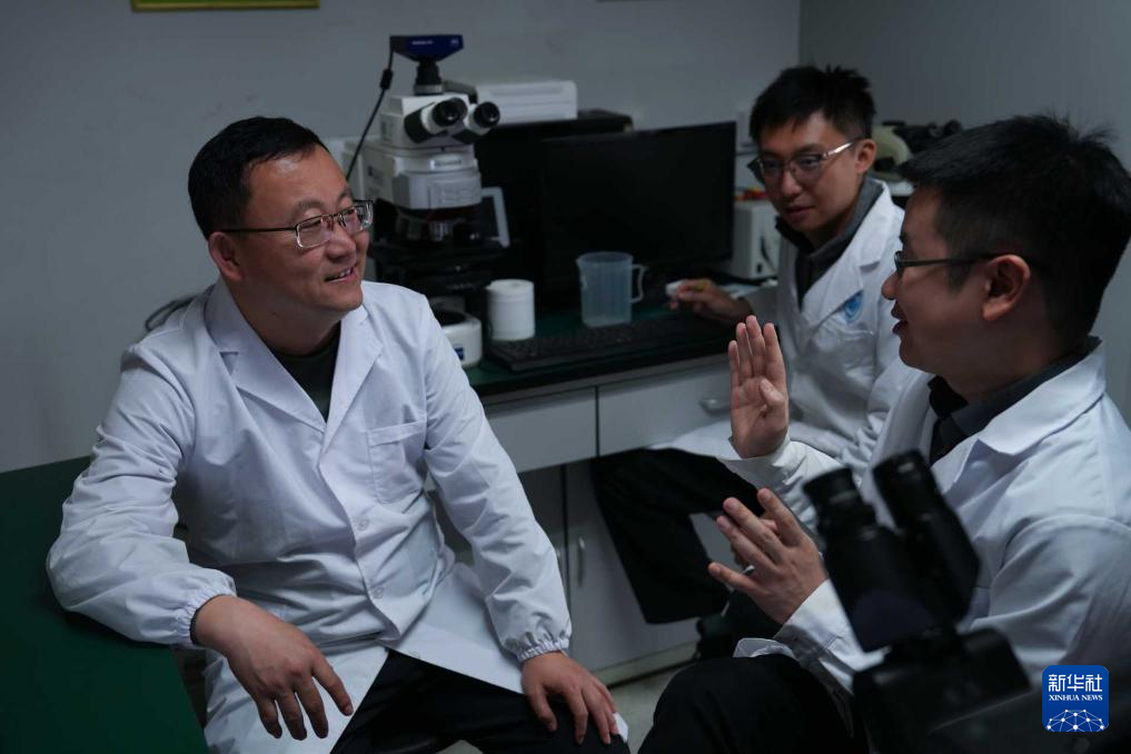 4月3日,研究團隊正在討論問題。新華社發(fā)(周久淞攝)