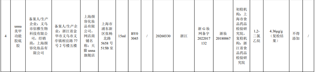 根據(jù)通告,在2023年國(guó)家化妝品抽樣檢驗(yàn)工作中,經(jīng)上海市食品藥品檢驗(yàn)研究院等單位檢驗(yàn),產(chǎn)品標(biāo)簽標(biāo)示委托方為溫州市鈺啟化妝品有限公司、受托生產(chǎn)企業(yè)為金華市纖爍化妝品有限公司生產(chǎn)的幻臻水性彩色指甲油HZ088等7批次化妝品不符合規(guī)定,檢出《化妝品安全技術(shù)規(guī)范(2015年版)》中規(guī)定的禁用原料。
