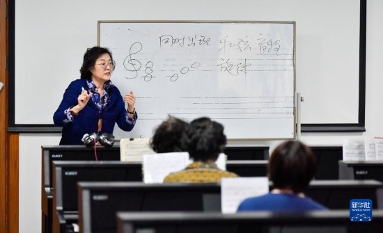 4月4日,在天津市河西區(qū)文化館,老人們在上聲樂課。