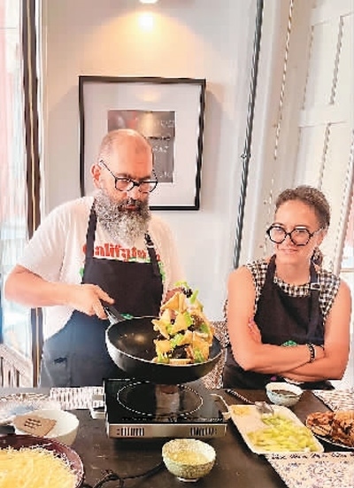 米蓋爾選修的是中華廚藝課,不僅自己學(xué)習(xí),還把太太拉來一起學(xué)做中國菜?!笆フQ晚宴全家聚會(huì)時(shí),我們做了幾道中國菜,把全家人驚艷到了?!泵咨w爾說。