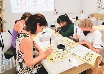 | 西班牙格大孔院學(xué)員正在上中國書法課。 |