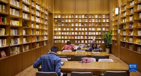 4月21日,讀者在北京市豐臺區(qū)一家書店內讀書學習。