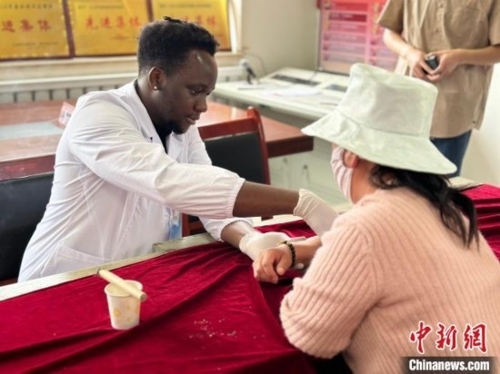 圖為贊比亞留學生為紅崖溝村村民診療。劉洋 攝