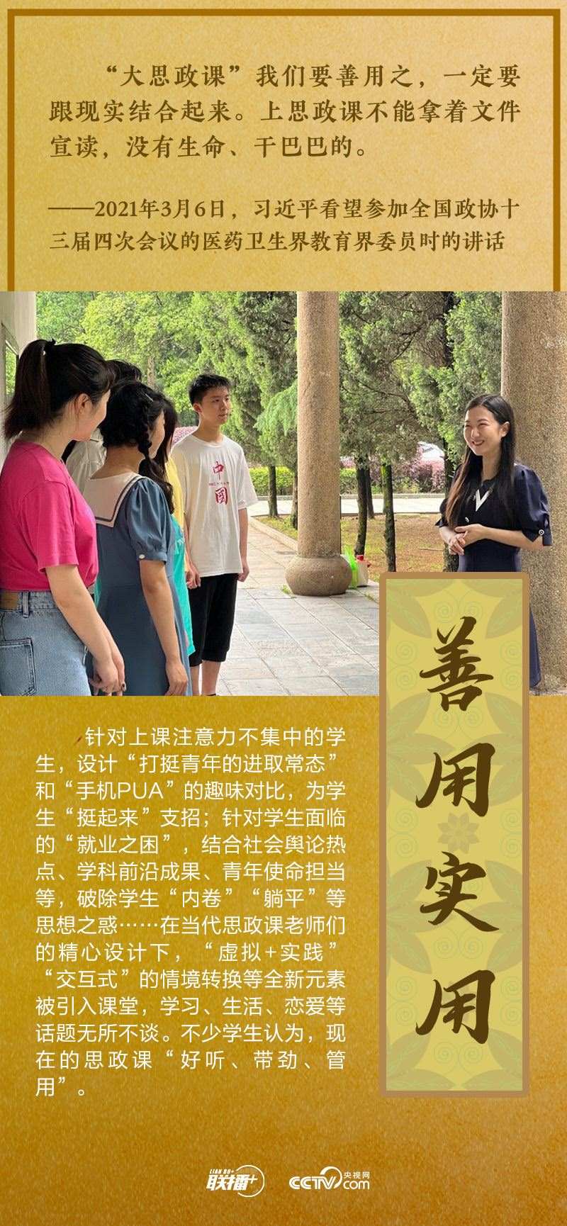 “上思政課不能拿著文件宣讀,沒有生命、干巴巴的”“要善于利用國內(nèi)外的事實(shí)、案例、素材,在比較中回答學(xué)生的疑惑”“要運(yùn)用新媒體新技術(shù)使工作活起來”“讓思政課成為一門有溫度的課”……辦好思政課,總書記一向十分關(guān)心。