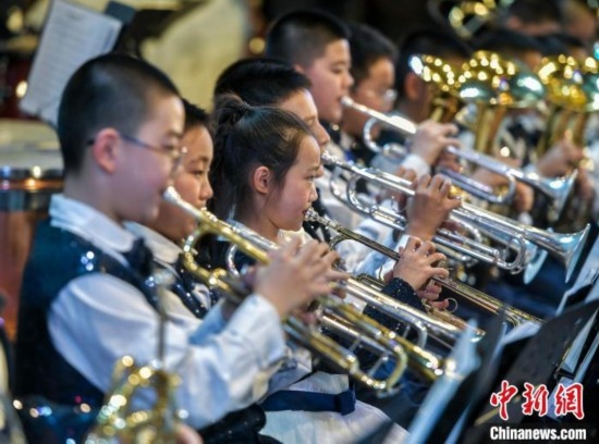 該交響管樂團成立于2014年,平均年齡10歲,是一支非常年輕有朝氣的隊伍。中新網(wǎng)記者 劉新 攝