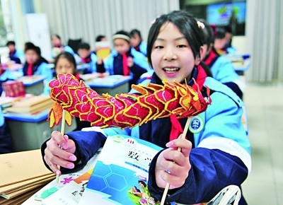 2月26日,湖北省宜昌市秭歸縣實驗小學學生展示寒假期間制作的手工作品。