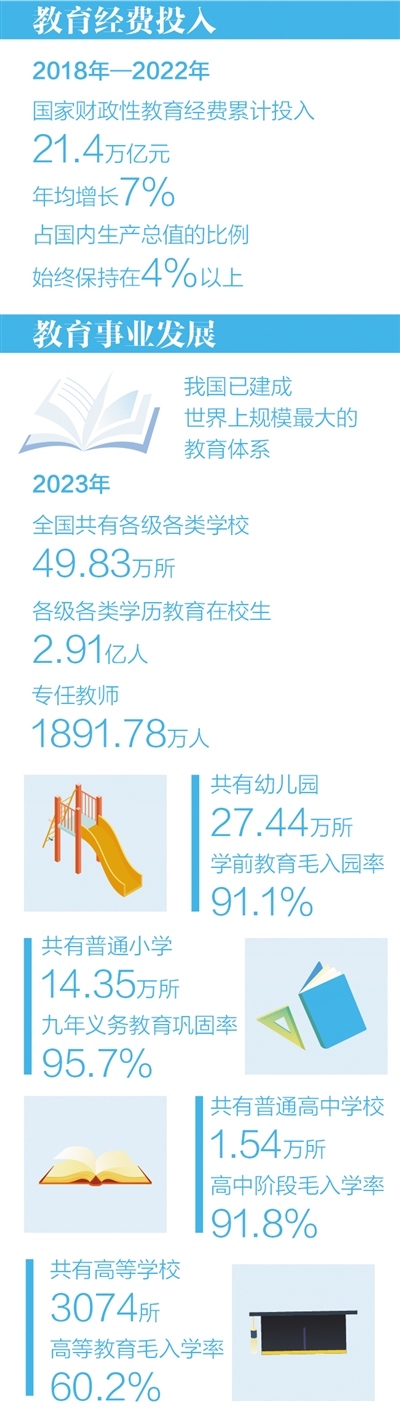 教育興則國家興,教育強則國家強。新時代以來,黨中央作出加快教育現代化、建設教育強國的重大決策,推動新時代教育事業(yè)取得歷史性成就、發(fā)生格局性變化。我國已建成世界上規(guī)模最大的教育體系,教育現代化發(fā)展總體水平跨入世界中上國家行列。