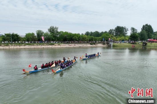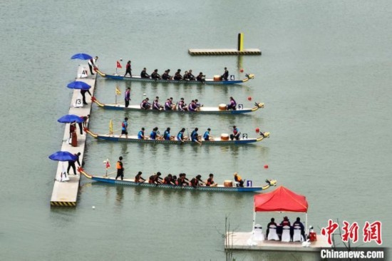 當(dāng)日,豐祥湖上鑼鼓喧天,隊員們揮汗如雨,奮楫向前。