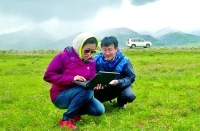 徐娜和同事在野外收集氣象數據。 受訪者供圖