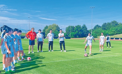 來自中國西部地區(qū)的U15女足隊日前在德國阿迪達(dá)斯總部足球場訓(xùn)練。本報記者 劉 赫攝