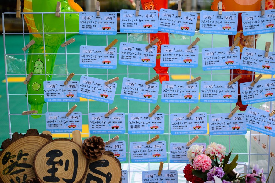 小朋友在家長的陪伴下,興高采烈走進(jìn)校園內(nèi)各個(gè)打卡地,打卡蓋章、拍照留念。