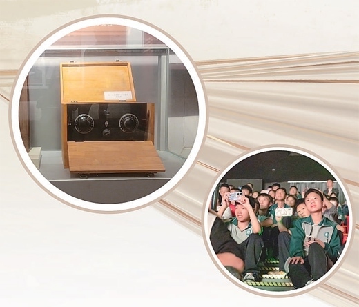 上圖:遵義會(huì)議會(huì)址展出的“半部電臺”復(fù)制品。下圖:學(xué)生們觀看《偉大轉(zhuǎn)折》演出。以上圖片均為遵義市委宣傳部提供