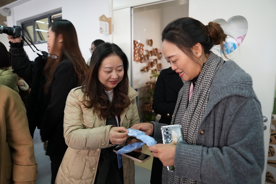 劉曉菲表示,利用幼兒園走廊寬的優(yōu)勢,把一樓打造成閱讀長廊,二樓藝術(shù)長廊,包括扎染、剪紙、造紙、拓印等非遺項(xiàng)目,三樓創(chuàng)造長廊,包括卡卡建構(gòu)、炫彩建構(gòu)、扭扭建構(gòu)、墻釘游戲、機(jī)械探索等。