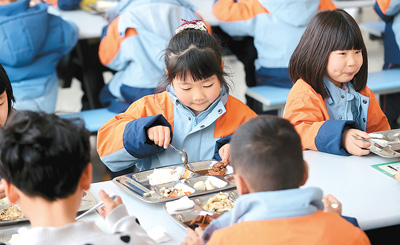 2月18日,浙江省湖州市德清縣春暉小學(xué)食堂內(nèi),小學(xué)生們?cè)谙碛脿I(yíng)養(yǎng)午餐。新學(xué)期開(kāi)始,德清縣全面推廣由浙江大學(xué)注冊(cè)營(yíng)養(yǎng)師團(tuán)隊(duì)定制的營(yíng)養(yǎng)餐,確保學(xué)生吃得安心、吃得健康、吃得科學(xué)。