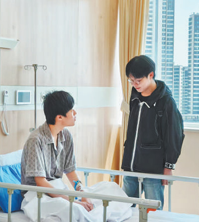 參加補(bǔ)考后,姜昭鵬的腳步格外輕快?!鞍l(fā)揮還可以。我是帶著大家的期待走進(jìn)考場(chǎng)的,這對(duì)我來說有著特殊的意義。”考完試,姜昭鵬馬上去探望同學(xué),兩人見面,相視而笑?!拔覀兗s好了,等他康復(fù),找地方吃頓飯?!苯样i說。