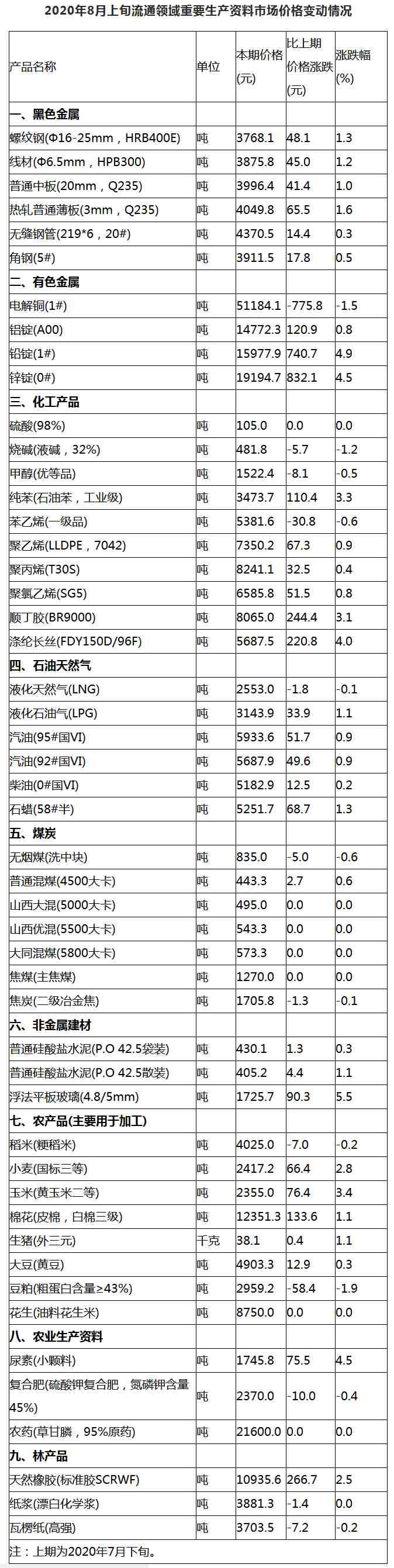 據(jù)國家統(tǒng)計(jì)局網(wǎng)站消息,據(jù)對(duì)全國流通領(lǐng)域9大類50種重要生產(chǎn)資料市場價(jià)格的監(jiān)測顯示,2020年8月上旬與7月下旬相比,31種產(chǎn)品價(jià)格上漲,11種下降,8種持平。其中,生豬(外三元)38.1元/千克,與7月下旬相比上漲0.4元,漲幅1.1%。