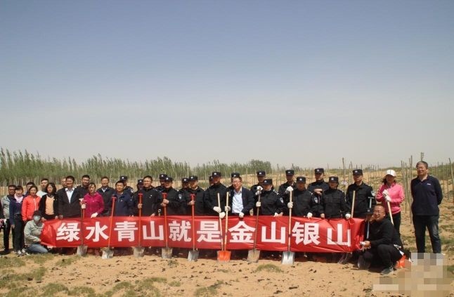 為了豐富這次紅色之旅,牢固樹立和踐行“綠水青山就是金山銀山”的理念,活動第二站開展了“共建生態(tài)公益林”活動。在植樹活動中,全體黨員精神飽滿,大家分工協(xié)作、相互配合,有的運(yùn)輸樹苗,有的揮鍬挖坑,有的扶苗栽種。經(jīng)過近2個小時的辛勤勞動,大家共同栽種樹苗410株。一排排樹苗迎風(fēng)挺立,為荒漠增添了新的生機(jī)。