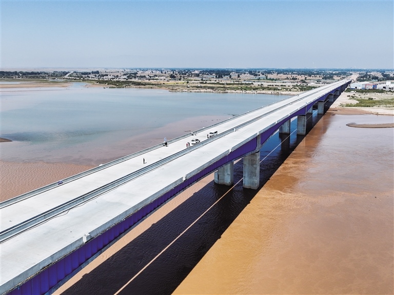 9月28日,包茂高速公路昭君黃河特大橋實現(xiàn)主體完工。昭君黃河特大橋是包茂高速包頭至東勝改擴建工程包頭西連接線的控制性工程,主橋為國內在建單聯(lián)最長的梁式橋,采用雙向4車道高速公路標準建設,全長4300米。該橋建成通車后,將極大地縮短包鄂兩地的行車時間,提升路網(wǎng)通行能力。(本報記者 王曉博 攝)