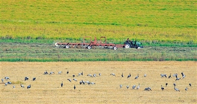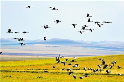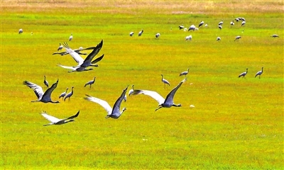在這優(yōu)美畫卷中,蓑羽鶴就是額侖草原上的精靈,給草原平添了生命的活力。蓑羽鶴是鶴類中個體最小者,對生態(tài)環(huán)境質(zhì)量要求很高。從之前的形單影只,到現(xiàn)在的成群結(jié)隊,蓑羽鶴對額侖草原的青睞,足以說明了額侖草原生態(tài)環(huán)境的保護(hù)成效。