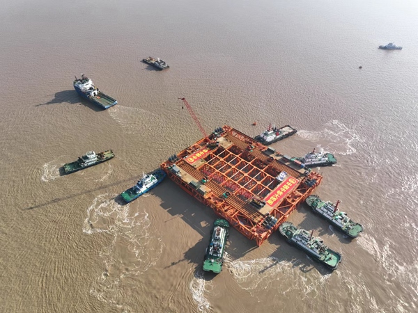 “自浮式鉆孔平臺定位后,我們將為平臺裝上8根將近百米的‘大長腿’,讓其能‘站’起來并屹立于海面之上。待平臺建好后,將把水上施工轉(zhuǎn)為陸地施工,既能縮短海上作業(yè)時間,也能確保施工安全質(zhì)量,為后續(xù)的6.3米世界最大直徑鉆孔樁施工提供有力保障?!敝需F大橋局甬舟鐵路西堠門公鐵兩用大橋總工程師王東輝說。