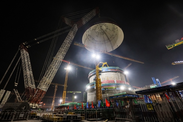 海南昌江核電二期3號機組內(nèi)穹頂成功吊裝。宋琨陽攝