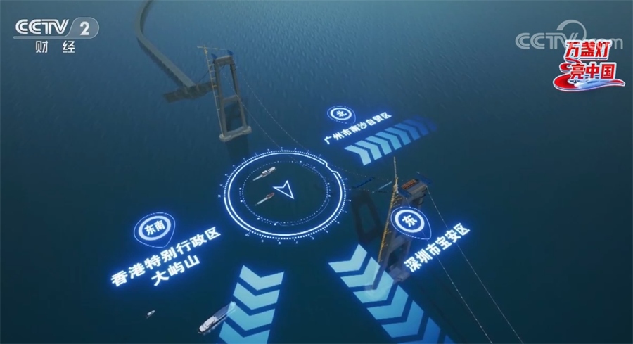 站在這條施工通道上,視野是真好,我的正前方是深圳寶安,東南方向是香港大嶼山,北邊是廣州南沙,背后是中山的馬鞍島,向南、向北分別望去,還依稀可見港珠澳大橋和虎門大橋。腳下的伶仃洋航道水面每天有約4000艘船舶穿行,而頭頂,在高峰時(shí)不到一分鐘就會(huì)有一架深圳寶安機(jī)場(chǎng)起飛的飛機(jī)掠過。