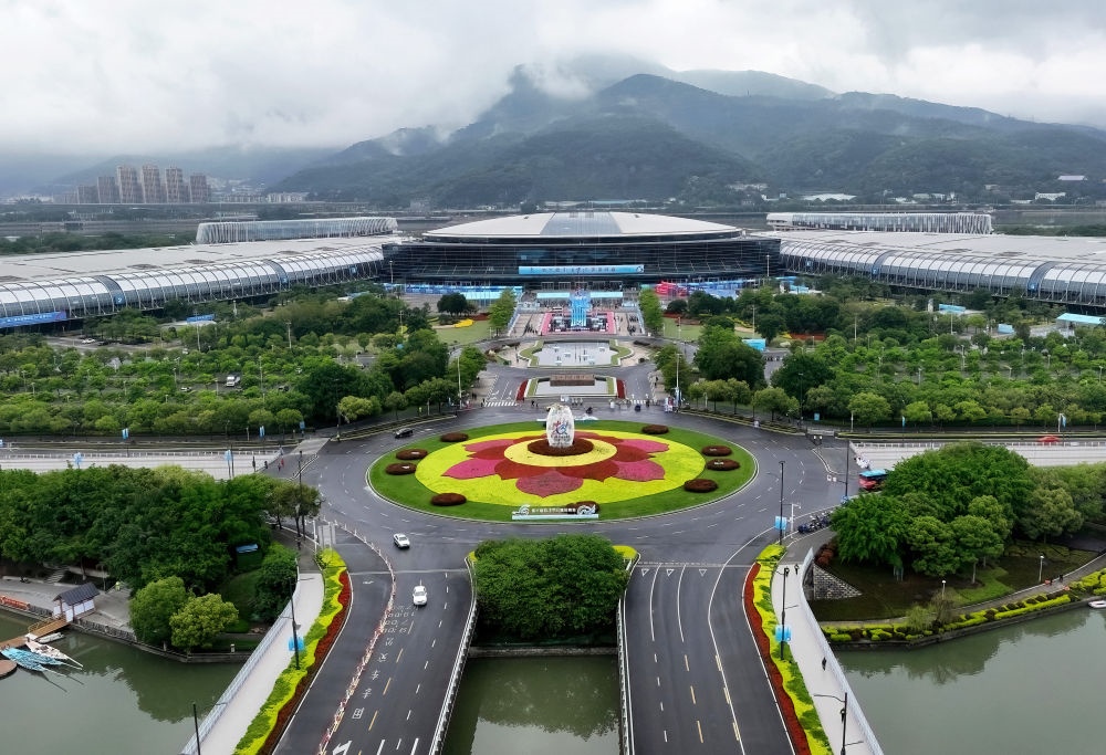這是4月26日拍攝的第六屆數(shù)字中國建設峰會主辦地福州海峽國際會展中心外景(無人機照片)。新華社記者 魏培全 攝