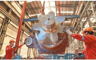 今年以來,上海振華重工集團(南通)傳動機械有限公司銷售火爆、生產(chǎn)繁忙。1至4月,公司實現(xiàn)新簽合同額超5億元,完成營業(yè)額5.2億元,同比增長近40%,完成利潤同比增長70%。圖為工作人員在該企業(yè)裝配車間忙碌。許叢軍攝(人民視覺)