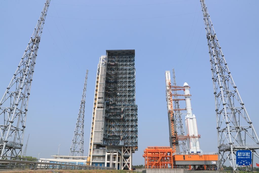 5月7日,天舟六號(hào)貨運(yùn)飛船與長(zhǎng)征七號(hào)遙七運(yùn)載火箭組合體垂直轉(zhuǎn)運(yùn)至發(fā)射塔架。新華社發(fā)(黃國(guó)暢 攝)