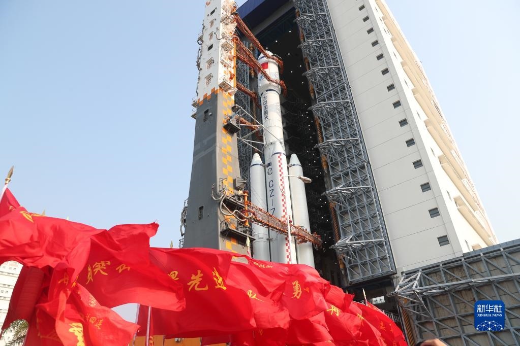 5月7日,天舟六號(hào)貨運(yùn)飛船與長(zhǎng)征七號(hào)遙七運(yùn)載火箭組合體在垂直轉(zhuǎn)運(yùn)中。新華社發(fā)(邱立軍 攝)