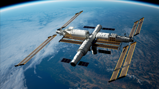 天舟六號貨運飛船在軌模擬效果圖。(中國航天科技集團八院供圖)