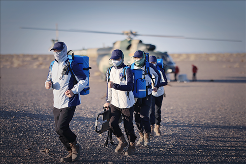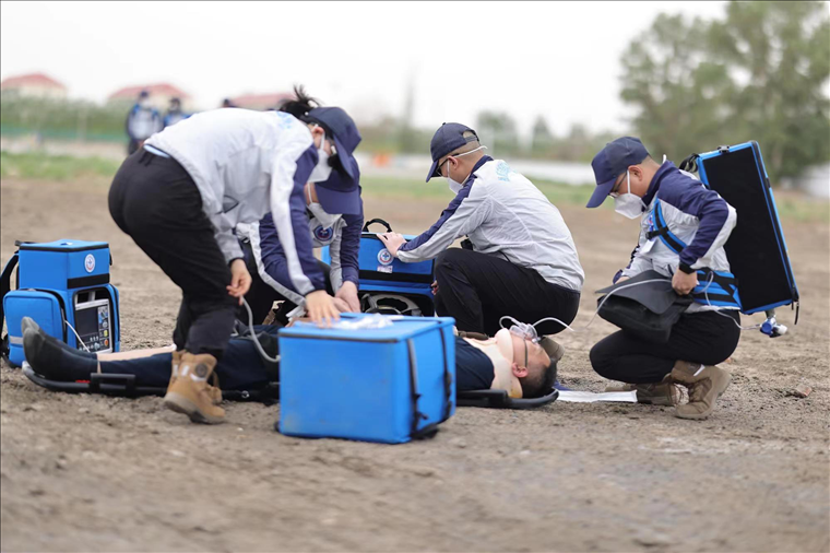他們首先將模擬航天員抬到鏟式擔架上,迅速作出病情判斷后,立即護送進入救護直升機。孔祥鍇發(fā)出指令,趙琳輸送氧氣,朱明開始心電監(jiān)測,高曉佩建立靜脈通道……。經(jīng)初步驗傷,按照原定救治程序展開急救……演習于第二天上午10時結(jié)束,返回駐地,大家立刻顧不上休整,又迅速對演練進行復(fù)盤。