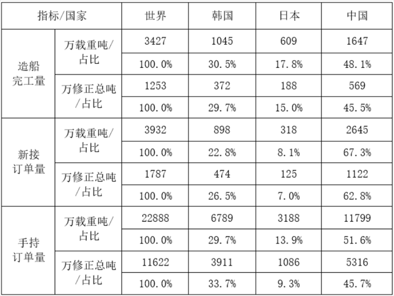 2023年1-5月世界造船三大指標(biāo)市場(chǎng)份額。 來(lái)源:中國(guó)船舶工業(yè)行業(yè)協(xié)會(huì)
