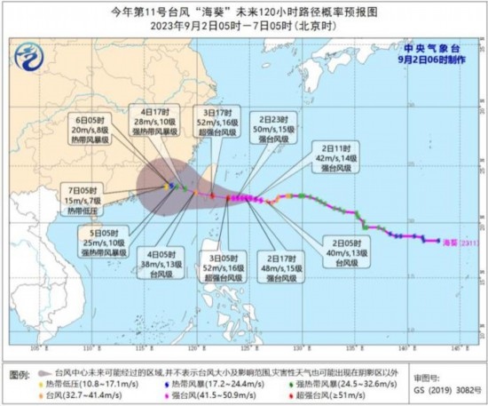 今年第11號(hào)臺(tái)風(fēng)“??蔽磥?lái)120小時(shí)路徑概率預(yù)報(bào)圖