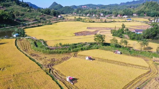 秋收時(shí)節(jié),稻田稻浪翻滾,作為“巴渝糧倉(cāng)”的重慶梁平區(qū)又迎來(lái)了豐收景象。