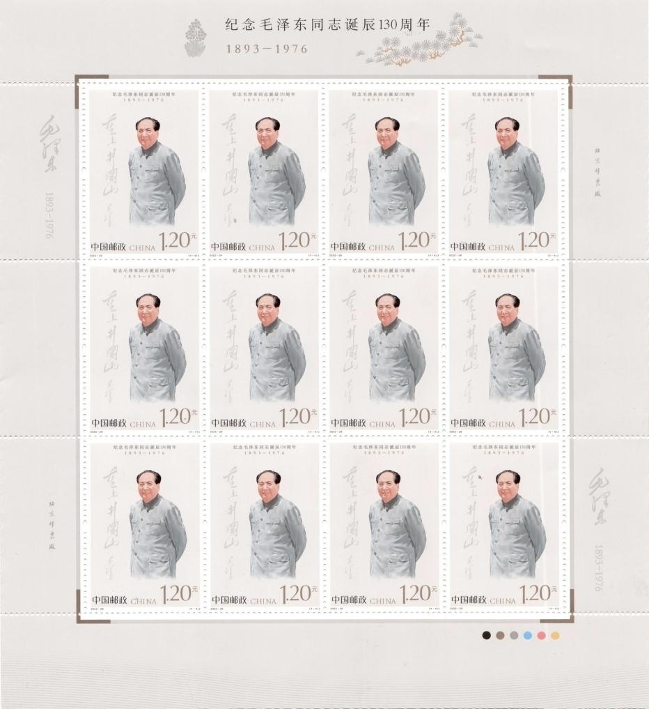 新華社北京12月25日電 中國郵政定于12月26日發(fā)行《紀(jì)念毛澤東同志誕辰130周年》紀(jì)念郵票1套4枚,郵票圖案名稱分別為堅(jiān)持抗戰(zhàn)、建設(shè)十三陵水庫、胸懷天下、重上井岡山。