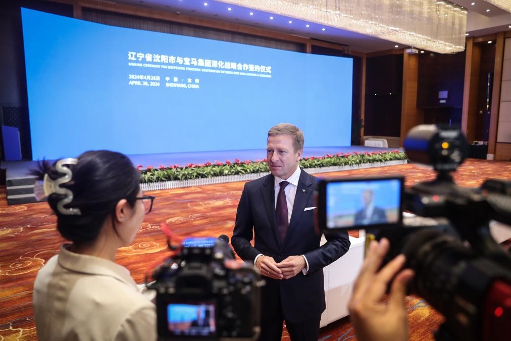 4月26日,寶馬集團(tuán)董事長(zhǎng)齊普策接受采訪。新華社記者 潘昱龍 攝