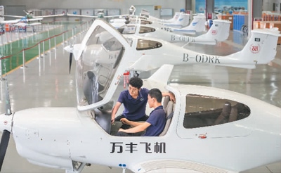 萬(wàn)豐集團(tuán)技術(shù)人員在調(diào)試新下線的飛機(jī)。章永濤攝