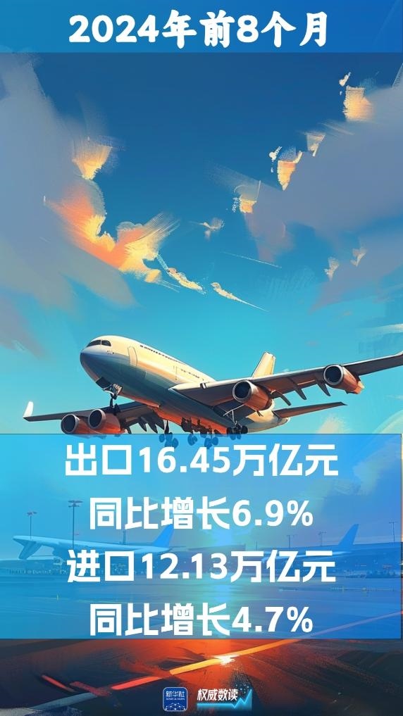 海關(guān)總署10日發(fā)布數(shù)據(jù):2024年前8個月,我國貨物貿(mào)易進(jìn)出口總值28.58萬億元人民幣,同比增長6%。其中,出口16.45萬億元,同比增長6.9%;進(jìn)口12.13萬億元,同比增長4.7%。