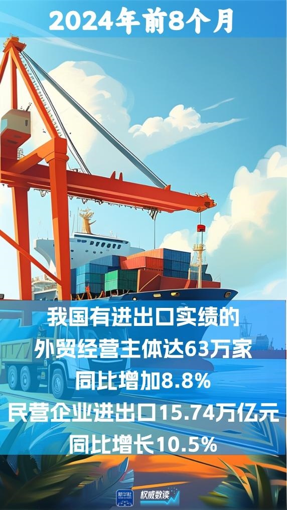 我國外貿(mào)經(jīng)營主體持續(xù)活躍,前8個月有進(jìn)出口實(shí)績的外貿(mào)經(jīng)營主體達(dá)63萬家,同比增加8.8%。其中,外貿(mào)主力軍民營企業(yè)進(jìn)出口15.74萬億元。